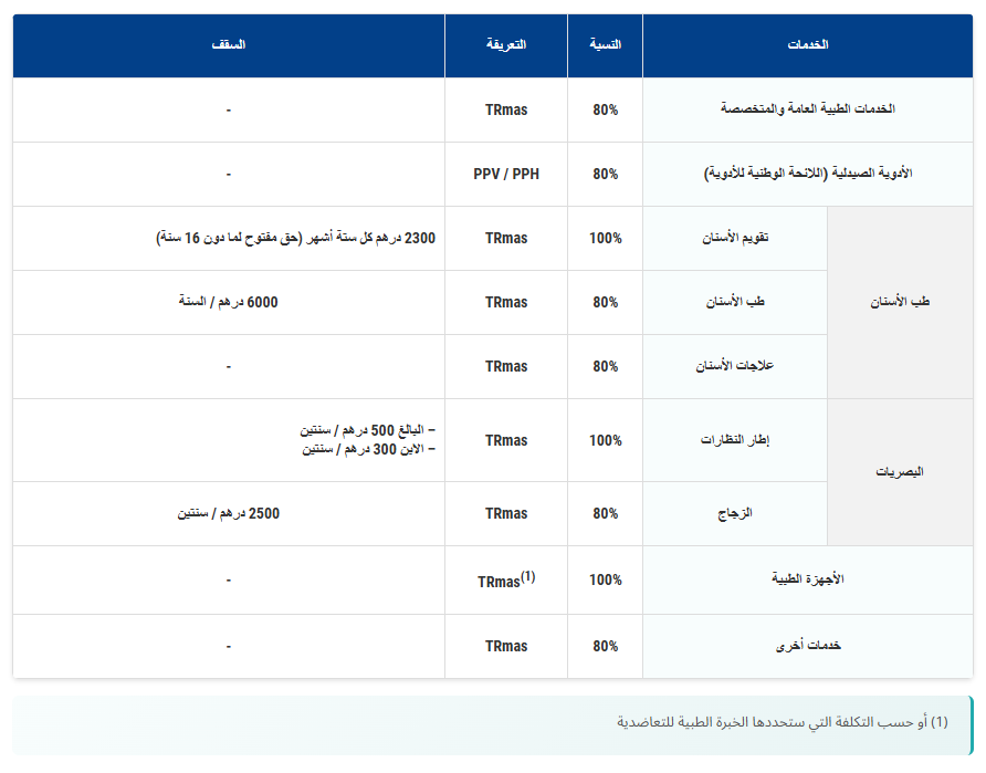 تتحمل تعاضدية العمل الاجتماعي من خلال نظام تغطيتها الصحية، الخدمات المنجزة من طرف منتجي العلاج،وفق الجدول المرفق: