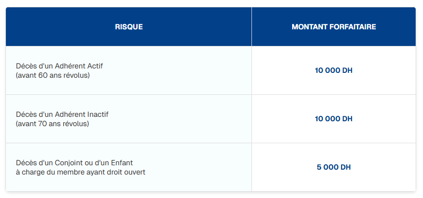 Les adhérents ont droit à la couverture des risques couverts, invalidité et décès, à travers :