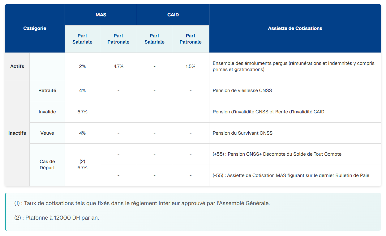 • Retraités de la CNSS et des organismes affiliés à la MAS ;